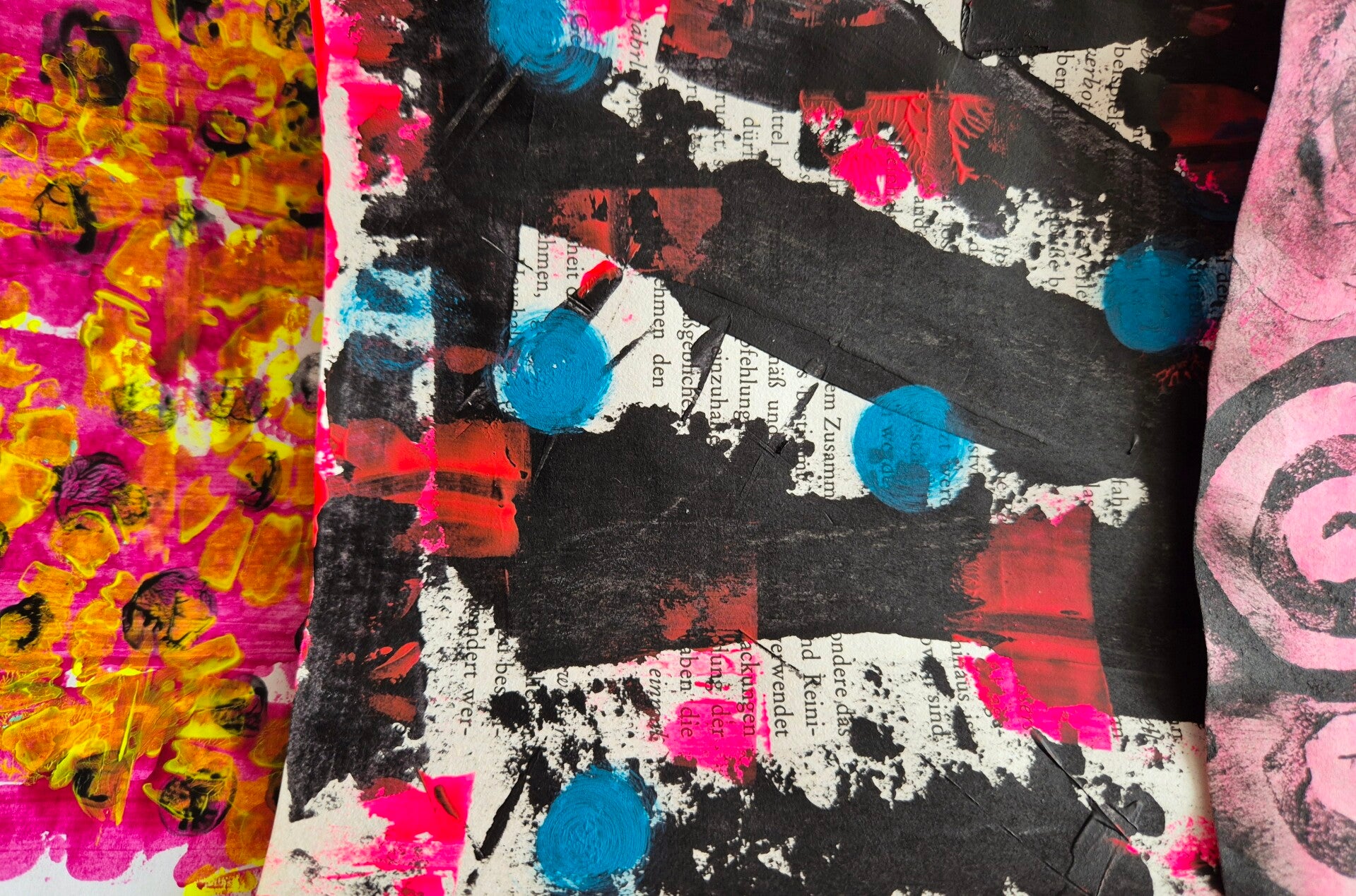 Ein kleines Chaos aus Neon, Struktur und Kontrast-jedes Blatt ein Unikat, bereit für dein nächstes kreative Projekt.